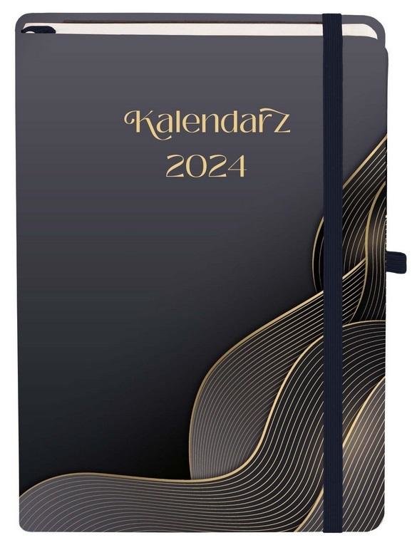 Kolekcja: GlamurFormat: A5Wymiary okładki: 144x210 mmUkład: dzień na stronieIlość stron: 352Oprawa: twardaMateriał: papierGramatura papieru: 80gKolor papieru: chamoiseDodatki: plan roku 2024, ważne wydarzenia, skorowidz adresowy, notatkiPionowa gumka zamykająca: takWstążka: czarnaGumka na...