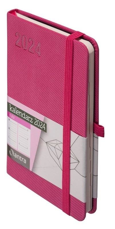 Kolekcja: Rubi Format: A6 Wymiary okładki: 140x90 mm Układ: tydzień do wglądu Ilość stron: 144 Oprawa: twarda Materiał: skóra ekologiczna, z fakturą Gramatura papieru: 80g Kolor papieru: off white Dodatki: plan roku 2024, ważne wydarzenia, plan miesiąca, skorowidz...