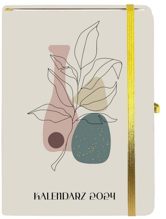 Kolekcja: Linear Format: A5 Wymiary okładki: 210x144 mm Układ: tydzień na stronie Ilość stron: 144 Oprawa: twarda Materiał: papier Gramatura papieru: 80g Kolor papieru: chamoise Dodatki: plan roku 2024, ważne wydarzenia, skorowidz adresowy, notatki Pionowa gumka...