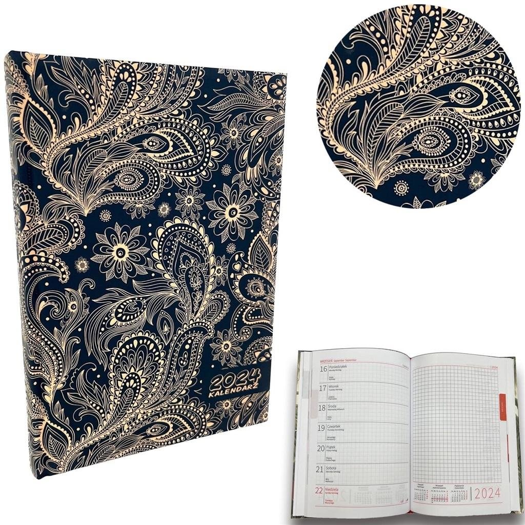 "kalendarz formatu A5, układ tygodniowy, okładka aksamitna soft touchkażdy tydzień roku znajduje się na jednej stronie kalendarza, a na sąsiedniej jest miejsce na notatkiterminarze miesięczne na początku i na końcu kalendarzabrak podziału godzinowegojęzyk polski, angielski, niemieckiimieniny oraz...