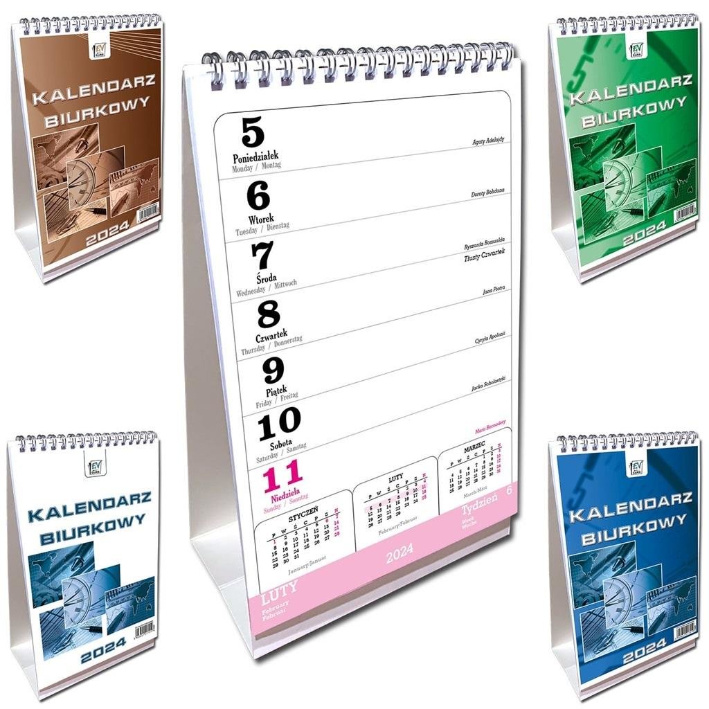 Mix wzorów. Towar wysyłamy losowo. Cena dotyczy jednej sztuki.kalendarz biurkowypionowyukład: tygodniowy z podglądem miesięcznymnumeracja tygodniimieninynazwy miesięcy i dni tygodnia w języku polskim, angielskim, niemieckimspirala srebrnaidealny do biura i dla firmwymiary: 14,5 x 23 cmuwaga!... przeczytaj całość