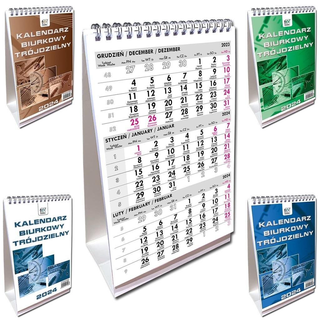 Kalendarz 2024 biurkowy trójdzielny pion A5 mix