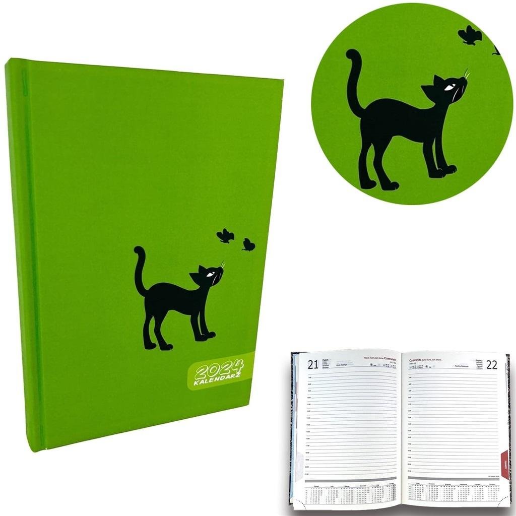 Kalendarz 2024 A5 dzienny sb/nd osobno Kot Zielony