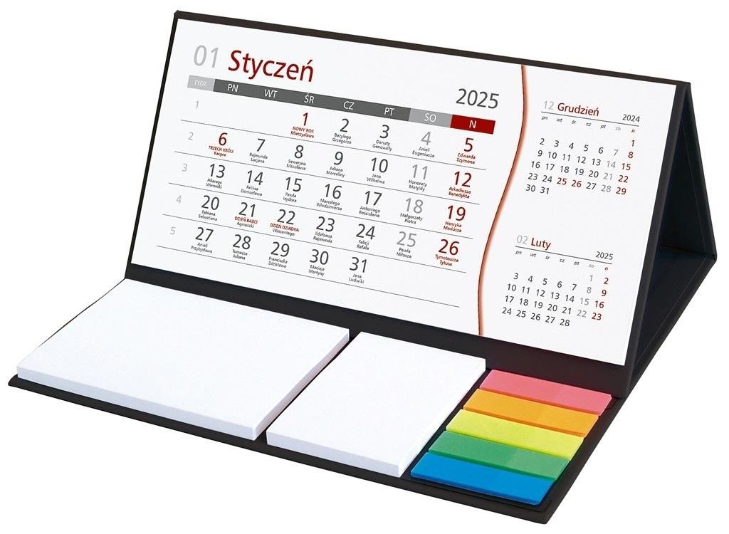 nr katalogowy: KB064Bukład: trzymiesięcznyformat kalendarium: 204 x 99 mmdruk: 2+0format kalendarza: 210 x 192 x 112 mmfoliowany pojedynczoopakowanie zbiorcze: 20 szt.Wygodny kalendarz stojący na biurko z przejrzystym kalendarium w układzie trójdzielnym z poręcznymi karteczkami samoprzylepnymi do...
