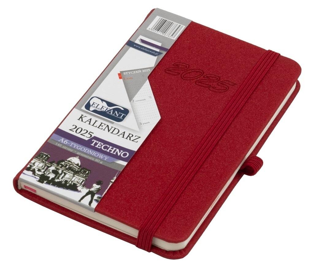 Kalendarz 2025 A6 tyg. Techno czerwony ELEFANT
