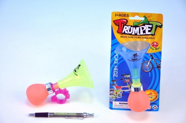 Klakson trumpeta na kolo 14cm na kartě