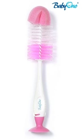 BabyOno Kartáč k mytí lahviček s přísavkou - růžový