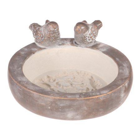 Krmítko/pítko - beton, kruhové, s ptáčky, antracitově šedé