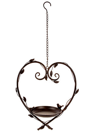 Krmítko pro ptáčky ve tvaru srdce, kovová zahradní dekorace k pověšení.