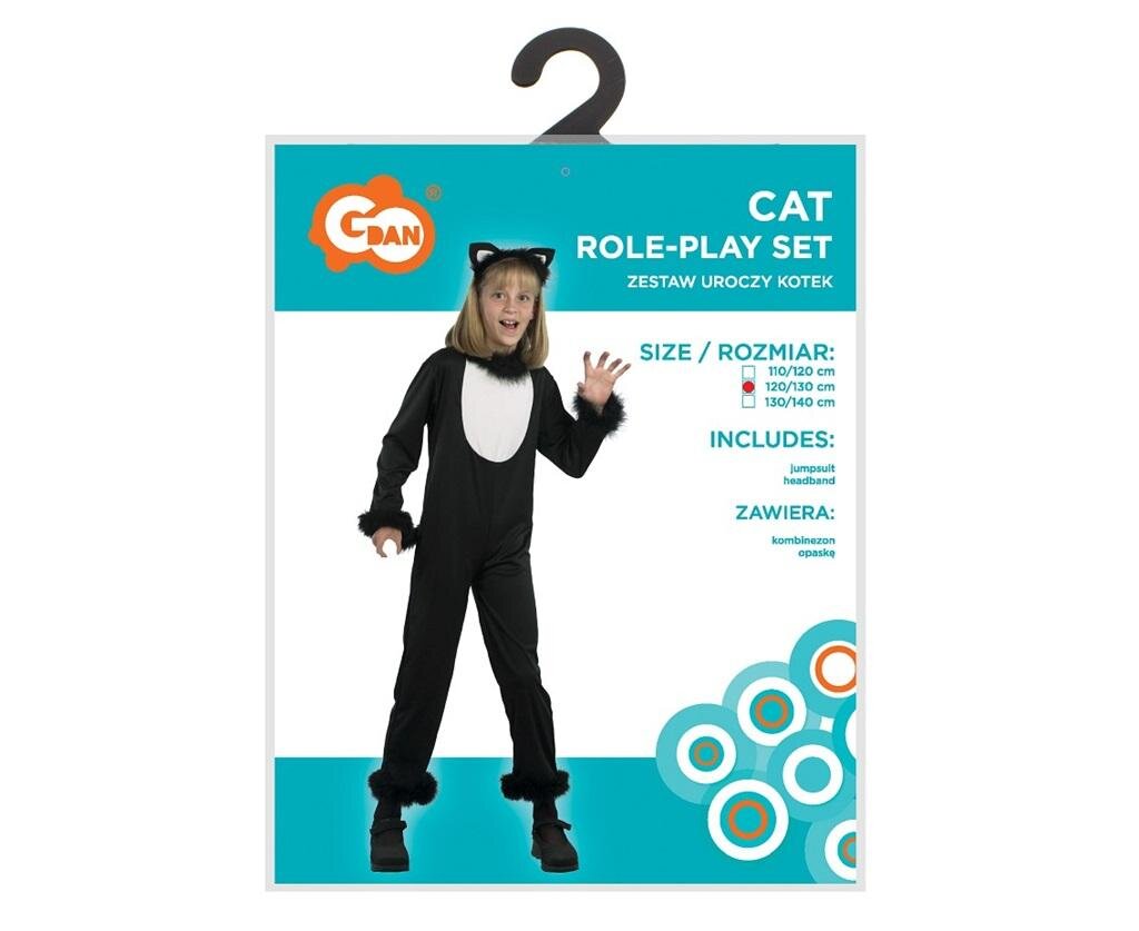 STRÓJ UROCZEGO KOTKA DLA DZIEWCZYNKIW skład stroju wchodzi: kombinezon, opaskaRozmiar: 120/130 cmKolor: różnokolorowyMateriał: 100% poliesterProducent: Godan przeczytaj całość