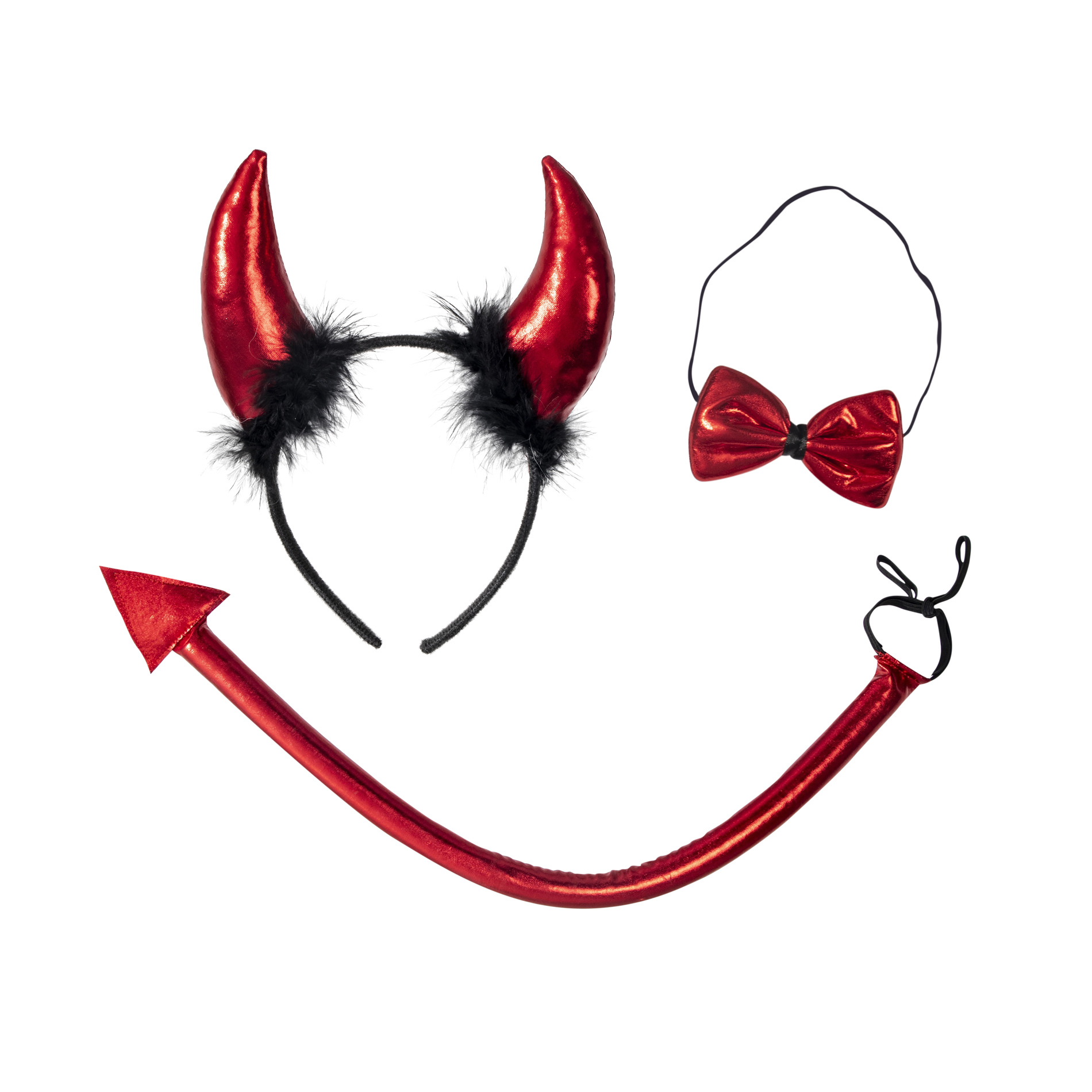 Uroczy zestaw diabelski, w którym znajdziesz opaskę z rogami, ogon i stylową muszkę. Ten dodatek jest idealny na imprezę mikołajkową. przeczytaj całość