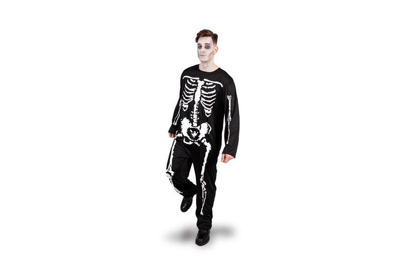 Strój Kościotrup w kolorze czarno-białym, rozmiar L. Skład: poliester - 100%. Sposób konserwacji: prać ręcznie. przeczytaj całość