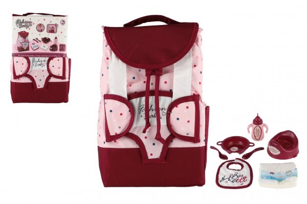 Batoh s nosítkem pro panenku látka 17x26cm s doplňky pro panenku v sáčku