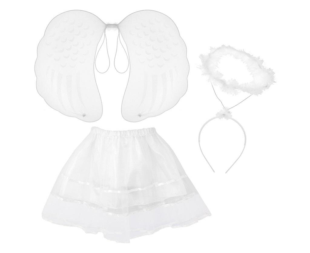 ZESTAW DLA DZIECI ANIOŁEKRozmiar: uniwersalnyKolor: białyIlość: 1 szt.Producent: Godanspódniczka z tasiemkami, skrzydła, aureolka przeczytaj całość