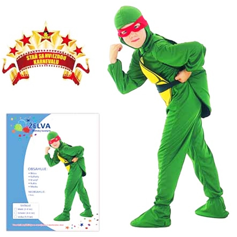 Karnevalový kostým Želva, pro děti o výšce 110 - 120 cm.V balení naleznete kombinézu, krunýř z látky kapuci a masku. Cena je za balení. Vhodné pro děti 4+. przeczytaj całość