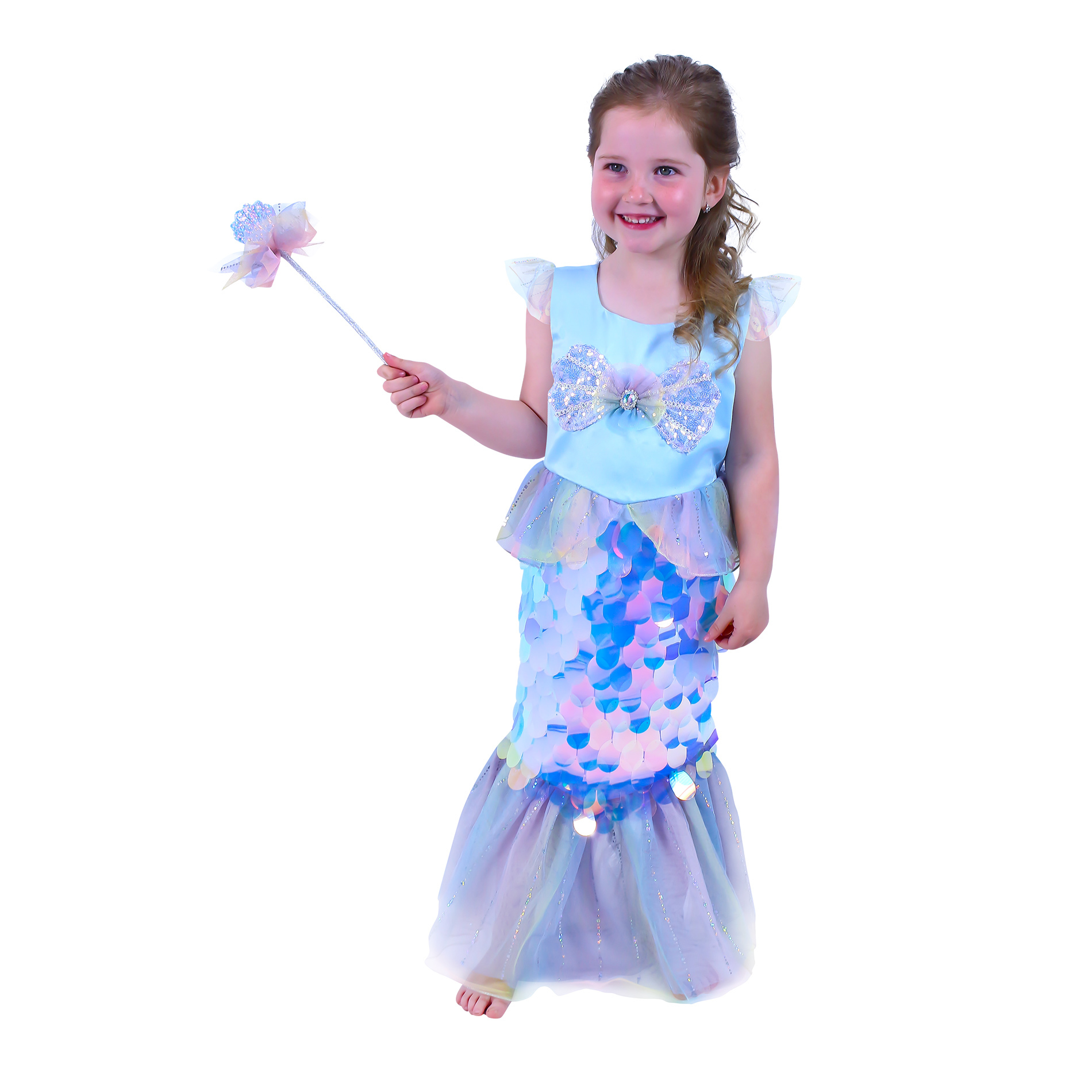 Zachwycający karnawałowy kostium o motywie syreny! Kostium w kolorze niebieskim w rozmiarze S przeznaczony jest dla dziewczynek w wieku 4-6 lat (110-116 cm). W opakowaniu znajduje się ekskluzywna sukienka, zdobiona cekinami przypominającymi łuski; częścią kostiumu jest także różdżka. przeczytaj całość
