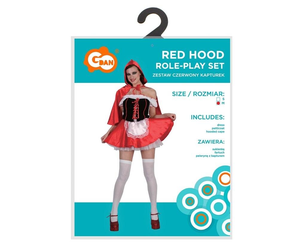 Strój czerwony kapturekZestaw zawiera: sukienka, fartuch, peleryna z kapturemRozmiar: MKolor: czarny, biały, czerwonyIlość: 1 szt.Producent: Godan przeczytaj całość
