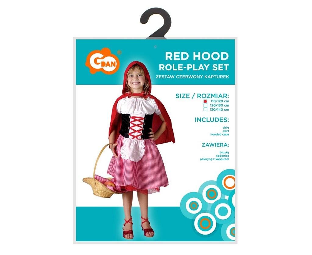STRÓJ CZERWONY KAPTUREKW skład stroju wchodzi: bluzka, spódnica, peleryna z kapturemRozmiar: 130/140 cmKolor: czerwonyMateriał: 100% poliesterProducent: Godan przeczytaj całość