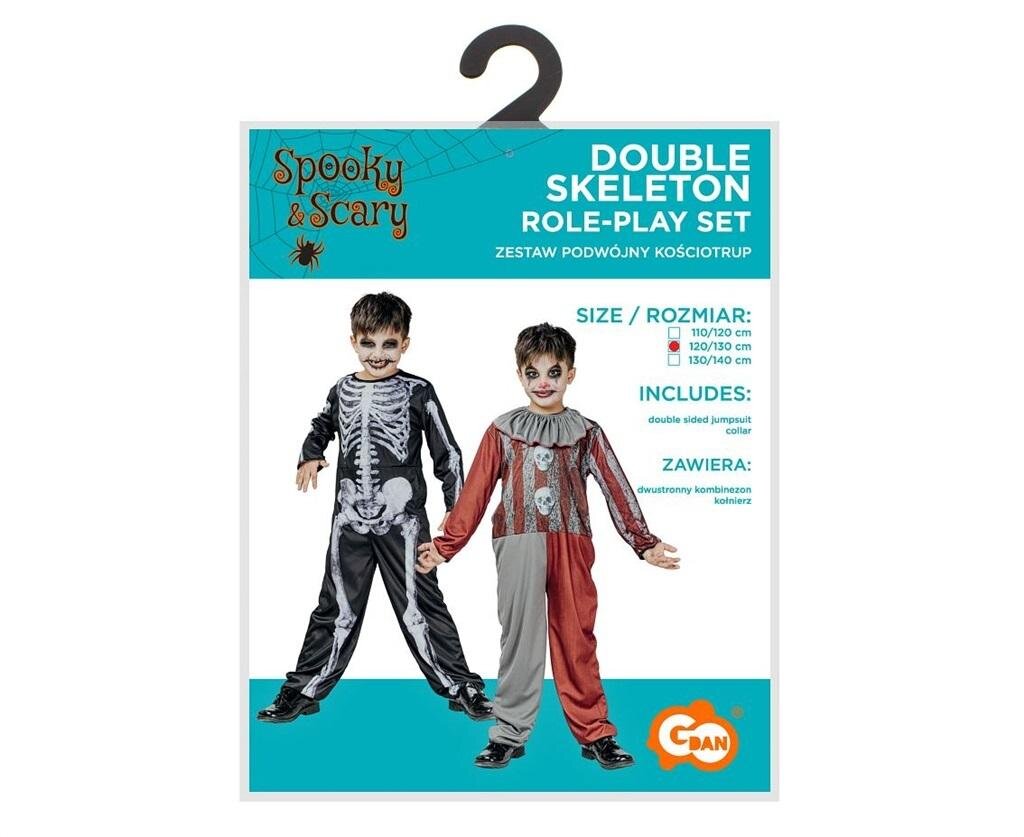 STRÓJ PODWÓJNY KOŚCIOTRUPW skład stroju wchodzą: dwustronny kombinezon, kołnierzRozmiar: 120/130 cmKolor: różnokolorowyMateriał: 100% poliesterProducent: Godan przeczytaj całość