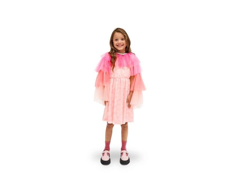 Strój Peleryna Wróżki, dziecięcy, rozmiar uniwersalny. Strój w kolorze różowego ombre ze srebrnymi, błyszczącymi przeszyciami. Strój składa się z tiulowej peleryny zapinanej pod szyją na rzep. Skład: 100% poliester. Wymiary produktu: peleryna: 58,81 cm, obwód kołnierzyka 45 cm przeczytaj całość