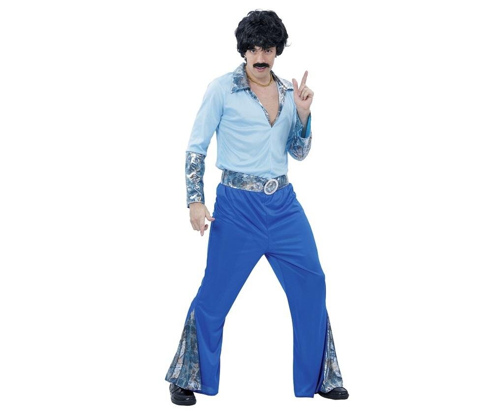 STRÓJ DISCO LATA 70'W skład stroju wchodzą: bluzka, spodnie, pasekKolor: niebieskiRozmiar: 52Materiał: 100% poliesterProducent: Godan przeczytaj całość