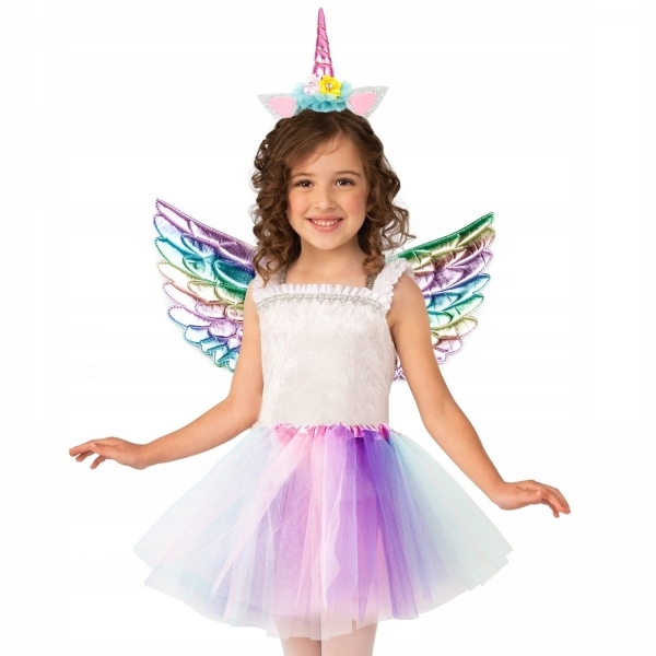 Dětský kostým v designu duhového jednorožce s křídly. Tato pohádková sada je dokonalým způsobem, jak přivést magii a kouzlo do hry a přeměnit vaše dítě na skutečného jednorožce. Tato sada je ideální pro dětské párty, Hallowen, karnevaly, kostýmové hry nebo jen pro zábavu a fantazii každý den i...