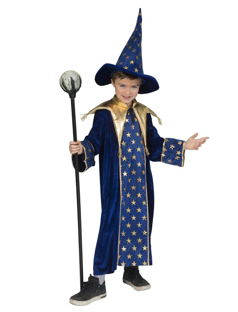 Modrý kostým se zlatými hvězdami. Součástí kostýmu je klobouk a plášť.Cílová skupina: DětiSložení látky: 100% PolyesterPokyny pro praní: Neperte | Nečistit chemicky | Nebělit | Nesušit v sušičce | NežehlitBarva: ModráObsah balení: Klobouk, plášť przeczytaj całość