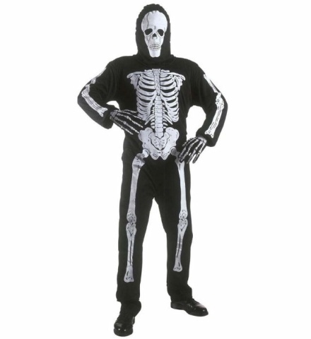 Karnevalový halloweenský kostým kostlivce pro děti. Kostým skeleton obsahuje: kombinézu s kapucí a maskou přes obličej, neobsahuje rukavice. Materiál: 100% Polyester Velikost: 11-13 let, 158 cm przeczytaj całość