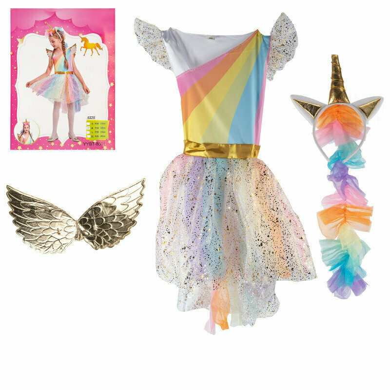 Strój Jednorożec rozmiar 120cm (sukienka, opaska z kokardkami, skrzydełka) 1006754