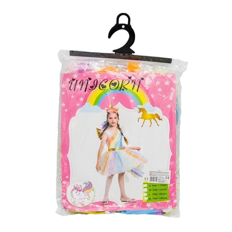 Strój Jednorożec rozmiar 130cm (sukienka, opaska z kokardkami, skrzydełka) 1006755