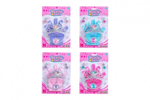 Sada krásy plast korunka, náhrdelník, naušnice, rukavičky 3 barvy na kartě 17,5x27,5cm