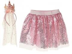 zestaw karnawałowy księżniczka - opaska z koroną i welonem, spódniczka na gumce z regulowaną szerokością i tiulową podszewką dł. 28cm, 36x25x4cm przeczytaj całość