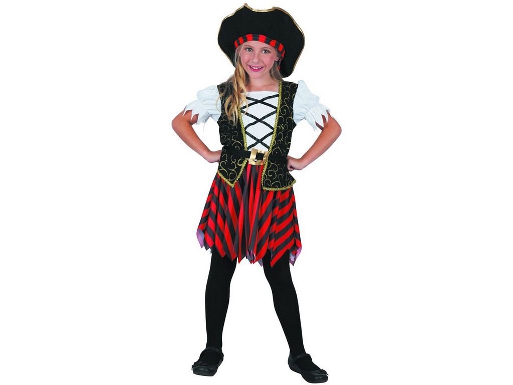 Šaty na karneval - pirátka, 120-130 cmVelikost: 120 - 130 cm.Kostým je vhodný pro holky ve věku 5-9 let.Balení obsahuje:- šaty- klobouk- opasek przeczytaj całość