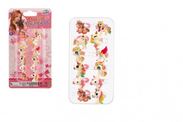 Prstýnky/Prstýnek sada 12ks plast jednorožec + duha na kartě 10x18,5x3cm