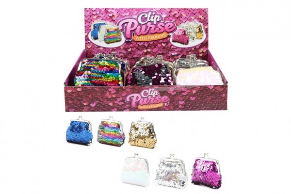 Peněženka dívčí s flitry látka/kov 8x8cm 6 barev 24ks v boxu