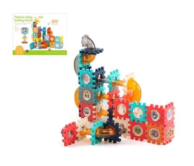 Kolorowe klocki z kolorowymi piłeczkami i tunelem dla urozmaicenia budowy. Produkt składa się z 98 klocków. Produkt zapakowany w kartonowe opakowanie. Podane wymiary są wymiarami opakowania. Produkt dla dzieci od 3 lat. przeczytaj całość