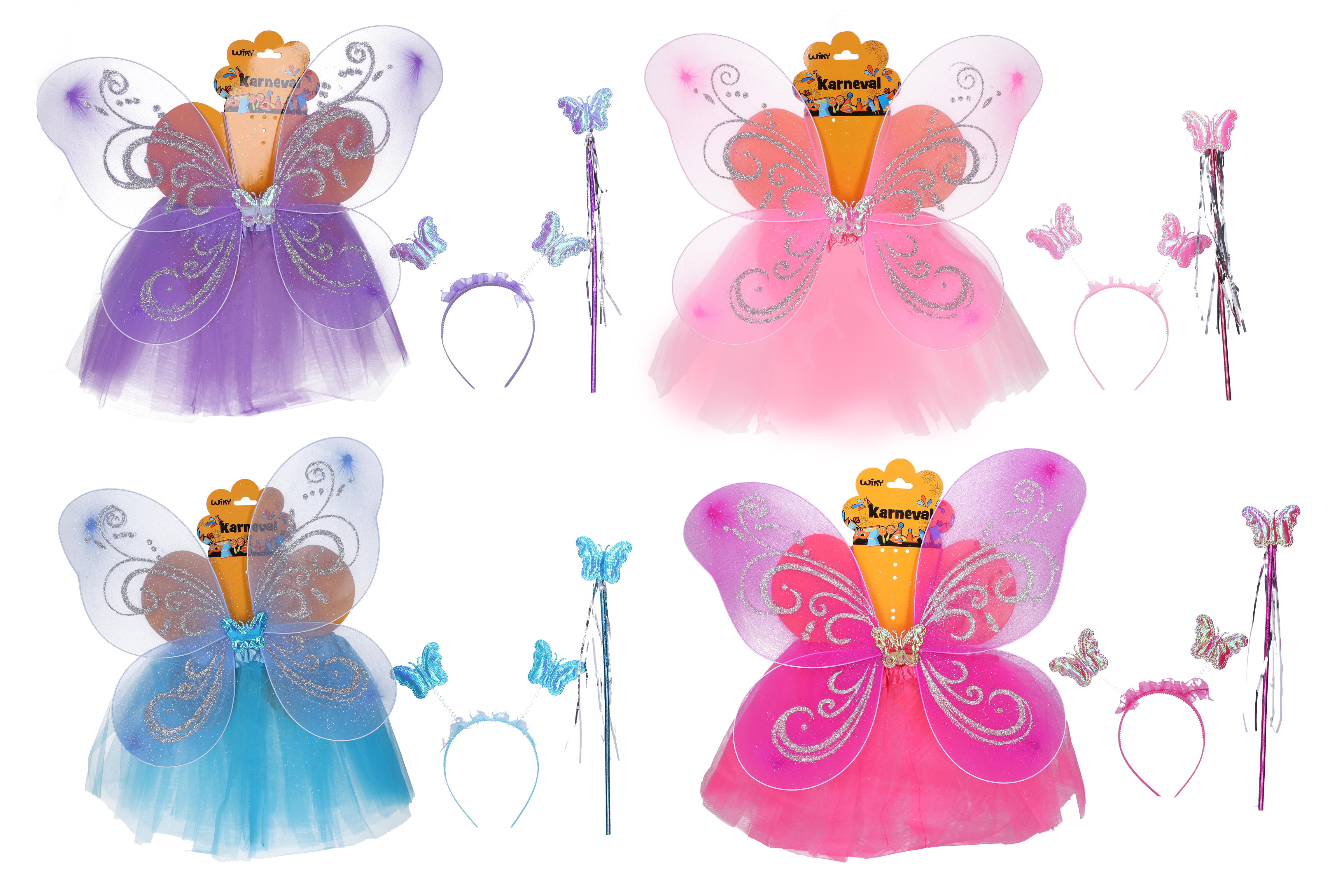 Karnevalový set - vílaObsahuje: sukně, křídla, hůlka, čelenkaDélka sukně: 30 cm4 různé barevné provedení przeczytaj całość