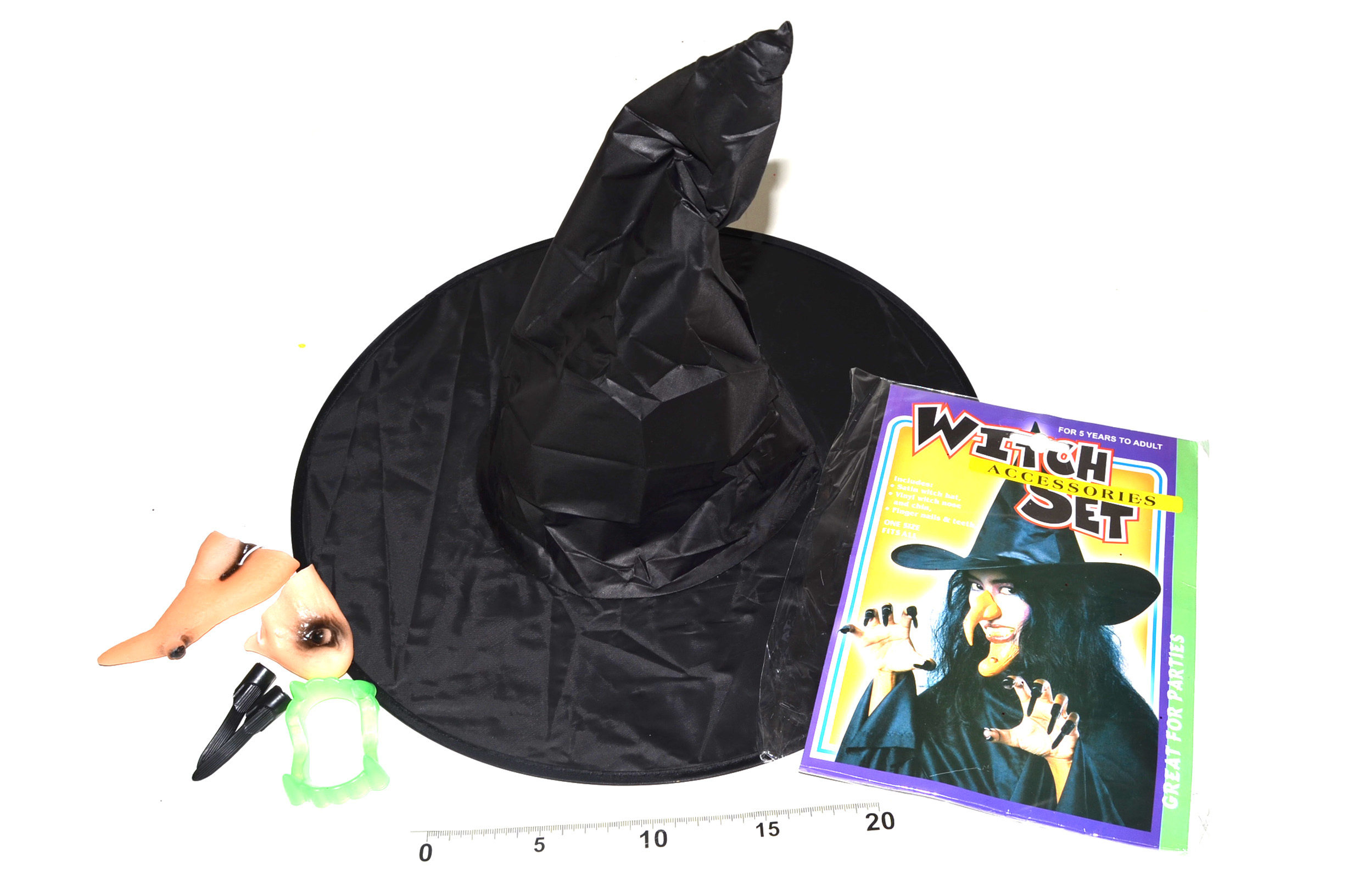 Set pro každou správnou čarodějniciSet obsahuje: bradu na gumičce, nos na gumičce, 10 nasazovacích prstů s nehty, zuby a velký čarodějnický klobouk przeczytaj całość