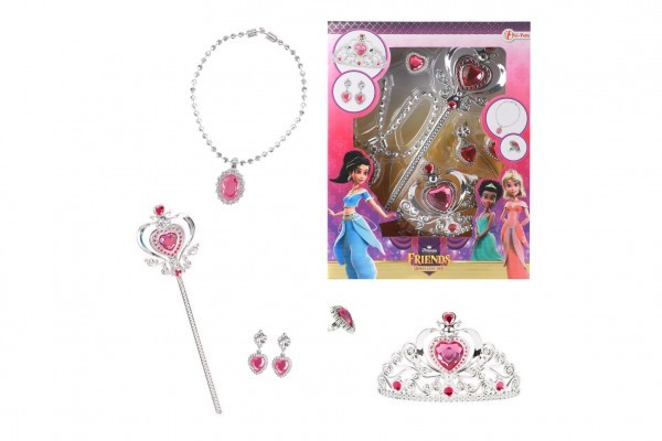 Sada krásy 5ks plast korunka, žezlo, náhrdelník, naušnice, prsten v krabičce 20x26x5cm