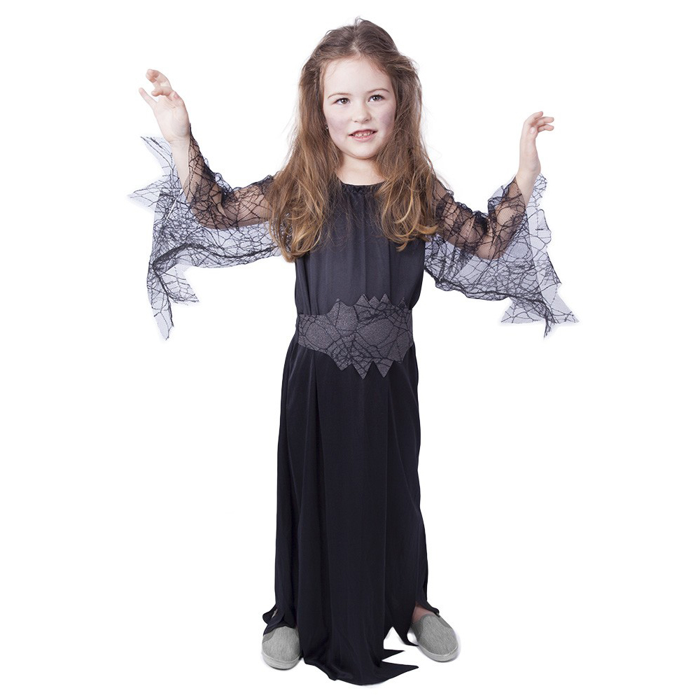 Kostým pro malé čarodějnice! Kostým černé barvy ve velikosti S je určen pro holčičky ve věkovém rozmezí 4-6 let (110-116 cm). Šaty jsou dekorovány průhlednými rukávy s motivem pavučin. S tímto úchvatným kostýmem se zaručeně staneš hvězdou karnevalu! przeczytaj całość