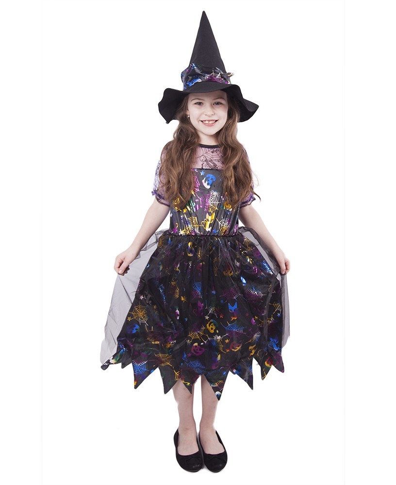 Karnevalový kostým pro malé čarodějnice! Kostým černo-fialové barvy ve velikosti M je určen pro holčičky ve věkovém rozmezí 6-8 let. Šaty jsou dekorovány barevnými halloweenskými motivy. Součástí kostýmu je perfektně sladěný čarodějnický klobouk. S tímto úchvatným kostýmem se zaručeně staneš... przeczytaj całość