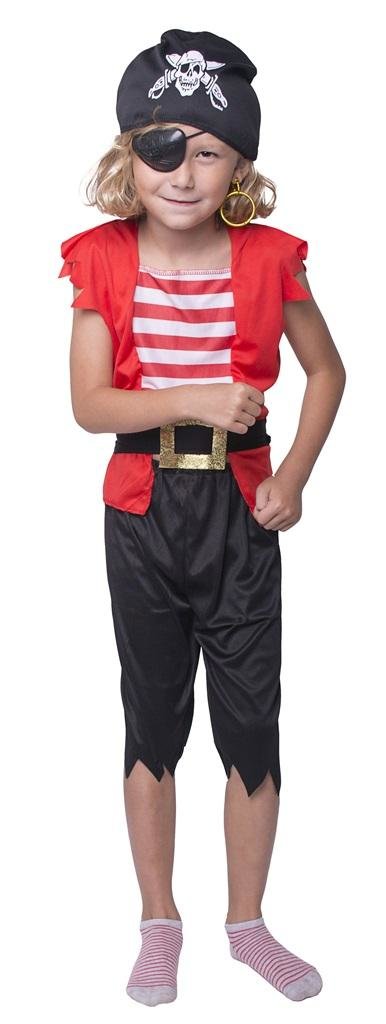 Przebranie dla chłopca - pirat. W skład zestawu wchodzi: - koszulka w biało-czerwone pasy z krótkim rękawem, - czarne spodenki, - pasek z czaszką, - czerwona opaska na głowę. Strój na bal przebierańców, zabawy karnawałowe w szkole i przedszkolu, zabawę tematyczną. Strój w rozmiarze M na wzrost... przeczytaj całość