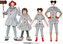 Kostým obsahuje: klaunské šaty s nákrčníkem a ozdobu nad boty