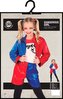 Dziecięcy strój Harley Quinn wyróżnia się żywymi kolorami i błyszczącymi materiałami w czerwono-niebieskiej kolorystyce, wiernie oddając charakter postaci. W zestawie znajduje się elegancka błyszcząca kurtka, kontrastowe kolorystycznie szorty oraz biała koszulka z wyraźnym czarnym napisem i czerwonym wstawieniem, które dopełniają całość. Dzięki starannemu wykończeniu ten kostium będzie świetnym towarzyszem każdej dziecięcej przygody.