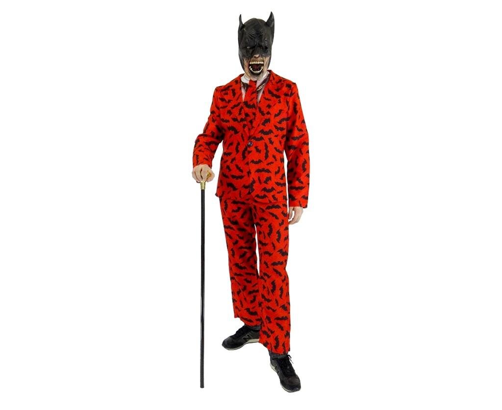 STRÓJ DLA DOROSŁYCH GARNITUR NIETOPERZRozmiar: 52Długość całkowita marynarki: 72 cmSzerokość pod pachami: 58 cmDługość rękawa: 66 cmDługość całkowita spodni: 103 cmSzerokość: 32 cmStrój zawiera dodatkowo: krawat.Materiał: 100% poliester. przeczytaj całość