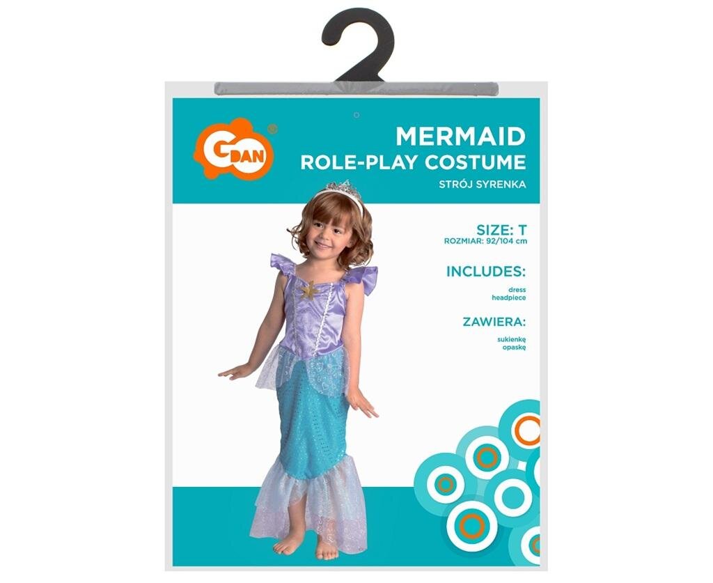 STRÓJ SYRENKI DLA DZIEWCZYNKIW skład stroju wchodzą: sukienka i opaskaDługość całkowita sukienki: ok. 82 cmSzerokość pod pachami: ok. 29 cmSzerokość w pasie: ok. 27-33 cm (gumka)Długość rękawa: ok. 7 cmRozmiar: 92/104 cmMateriał:100% poliesterProducent: Godan przeczytaj całość