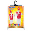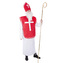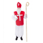 Strój zawiera koszulę o długości 145 cm mierzona od ramion, mitrę (czapkę) oraz ornat w klasycznym połączeniu kolorystycznym czerwonym z bielą. Dzięki uniwersalnemu rozmiarowi odpowiadającemu europejskiej oznaczonej literze L, jest odpowiedni dla większości dorosłych. Strój został zaprojektowany tak, by był łatwy w użyciu i wygodny, idealny do jednorazowego użycia podczas mikołajkowych imprez.