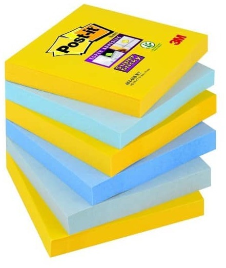 Karteczki samoprzylepne post-it® super sticky innowacyjne rozwiązanie na codzienne zarządzanie zadaniami i priorytetami dzięki kolorom świetnie się wyróżniają, dzięki super sticky trzymają się w każdym miejscu kolekcja 3 wyjątkowych kolorów karteczek: bananowo żółte, stalowa szarość, lazurowo...