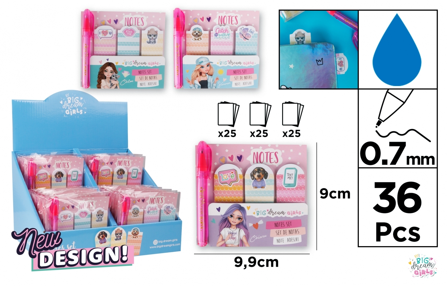 Karteczki samoprzylepne z mini długopisem Big Dream Girls A 36 MP BD23001