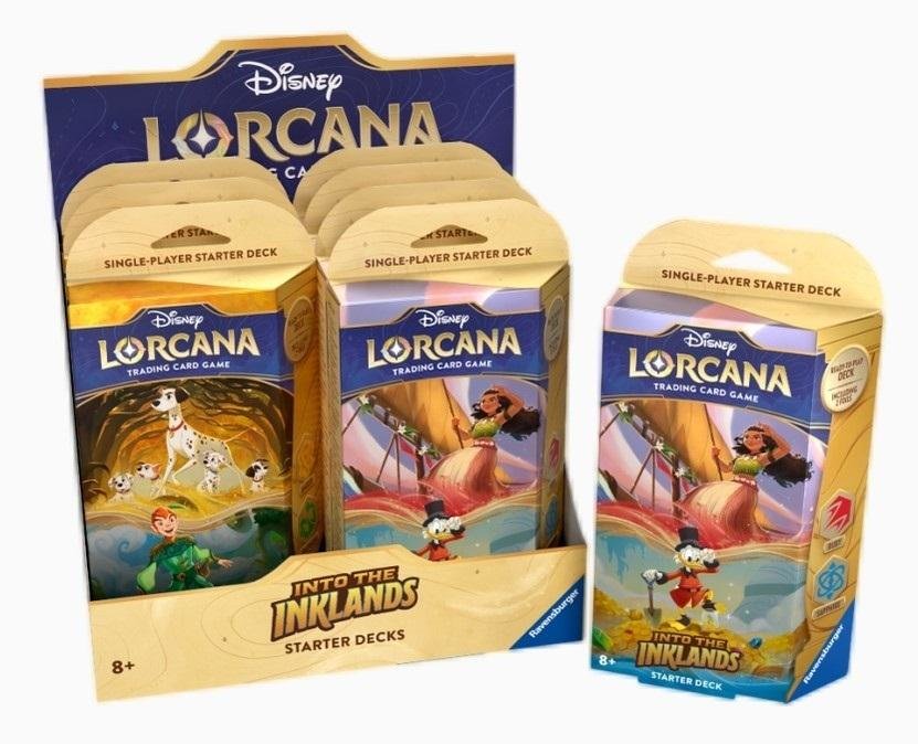 8 Starter Packów w display'u (2 sety - po 4 sztuki z każdego setu). W każdym Starter Packu: 60 kart, 11 żetonów, 1 boosterThis box contains 8 starter sets:4 x Into the Inklands: Ruby & Sapphire Starter Deck4 x Into the Inklands: Amber & Emerald Starter DeckTo play the Disney Lorcana TCG, each...